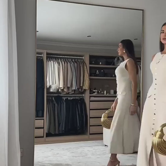 De Ivory Élise Dress is het toonbeeld van verfijnde eenvoud. Met haar elegante, aangesloten silhouet en vloeiende lengte straalt deze jurk pure klasse uit. De subtiele knoopsluiting aan de voorzijde en de verfijnde details bij de taille zorgen voor een vrouwelijke, sierlijke uitstraling die nooit uit de mode raakt.